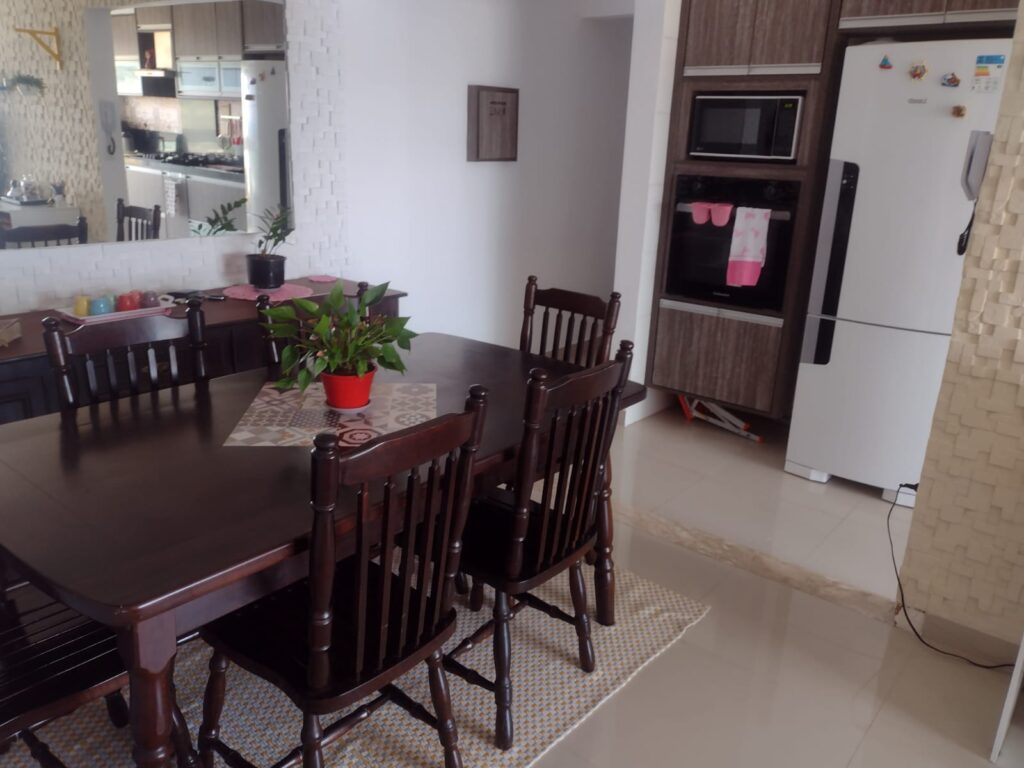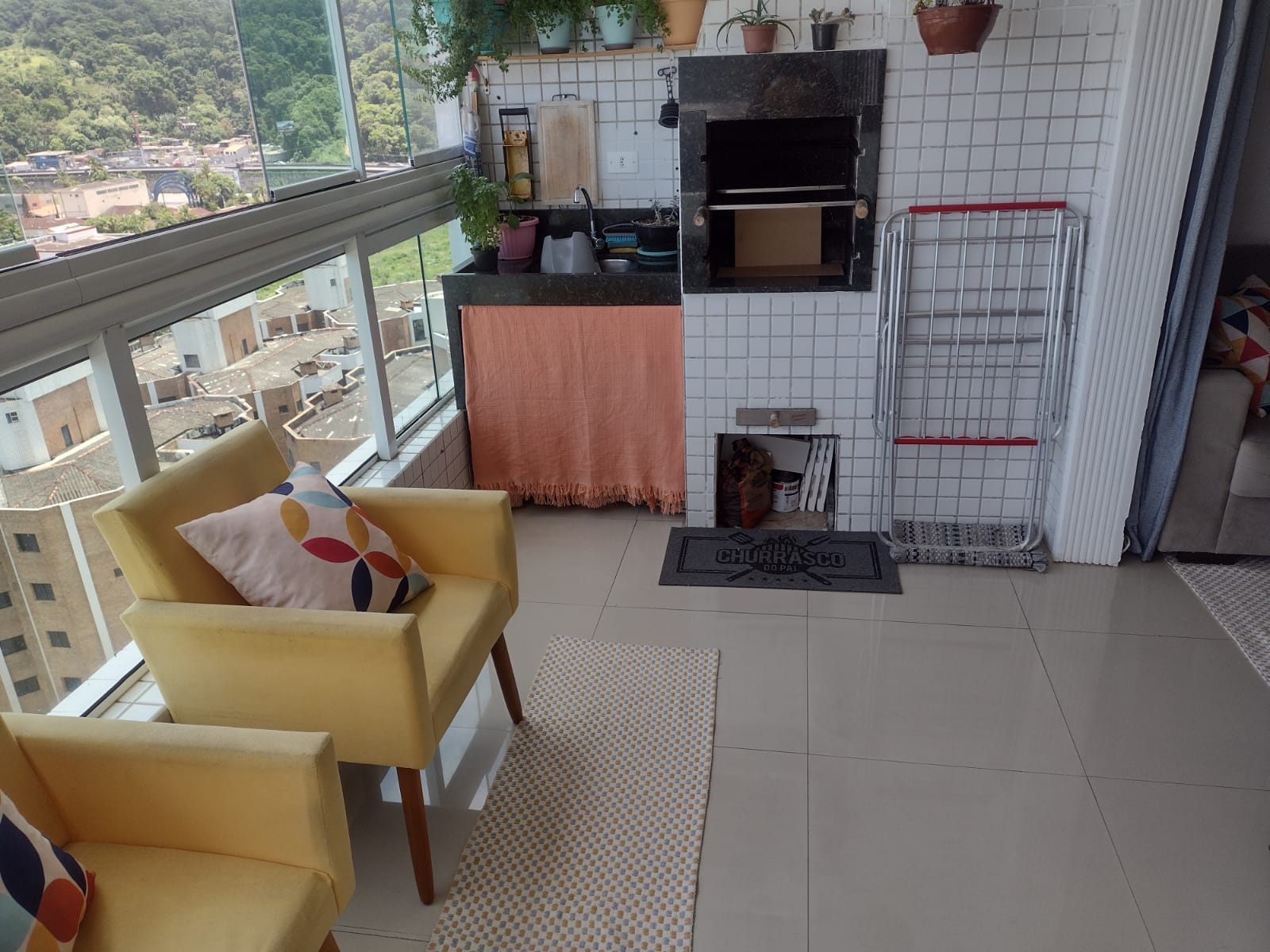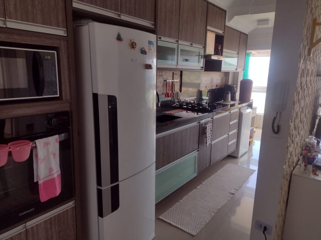 Contendo dois dormitórios sendo um suíte com banheiro integrado, sala para dois ambientes, cozinhas com armários planejados fogão cooktop e forno de embutir, varanda com churrasqueira e uma linda vista para o mar e a montanha.