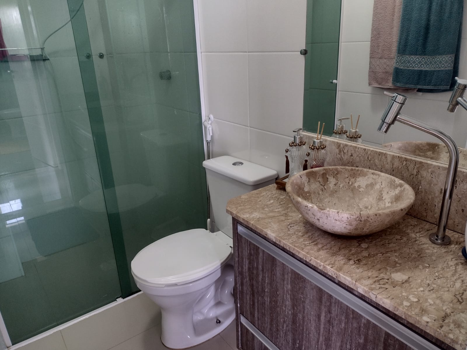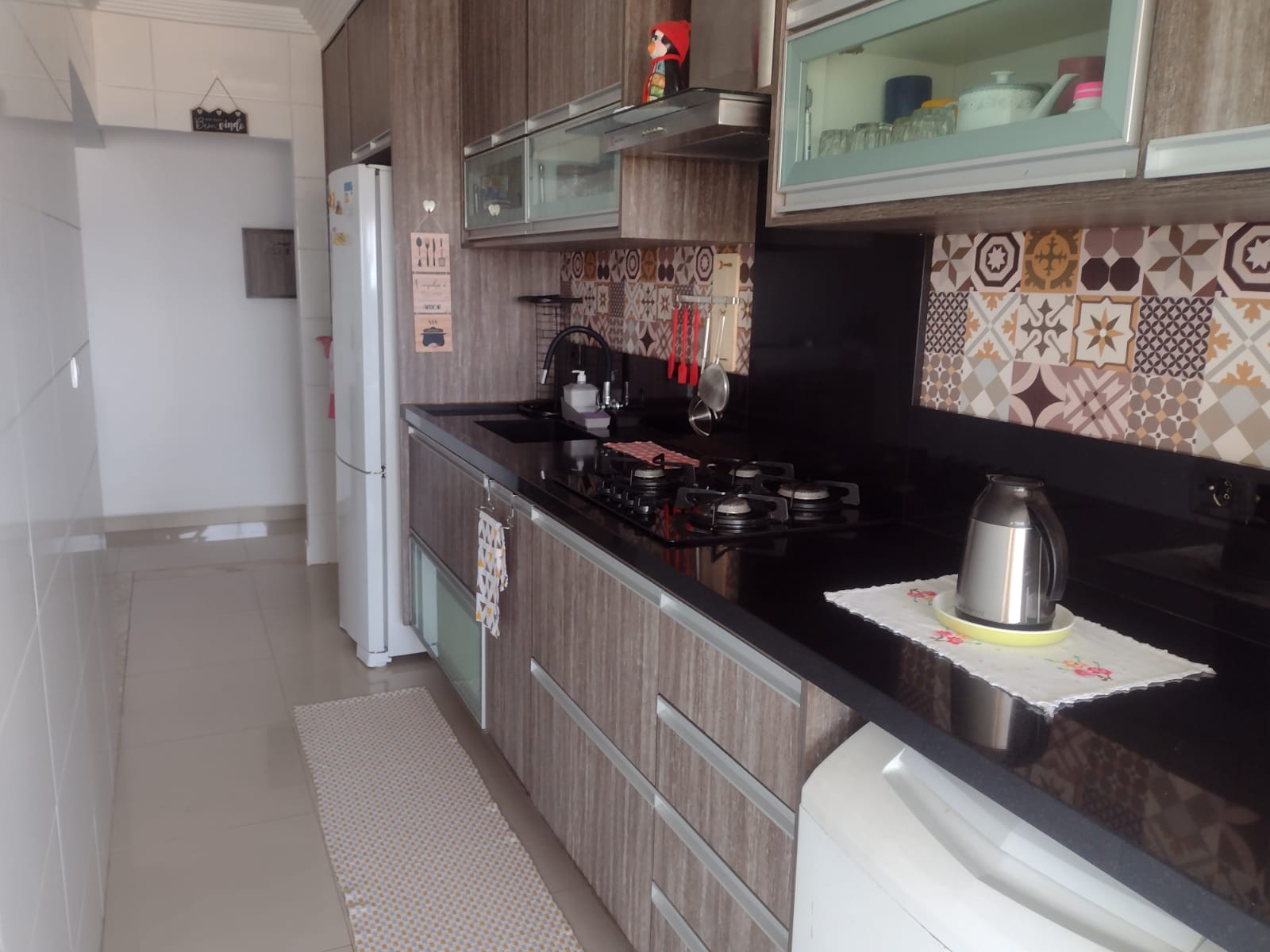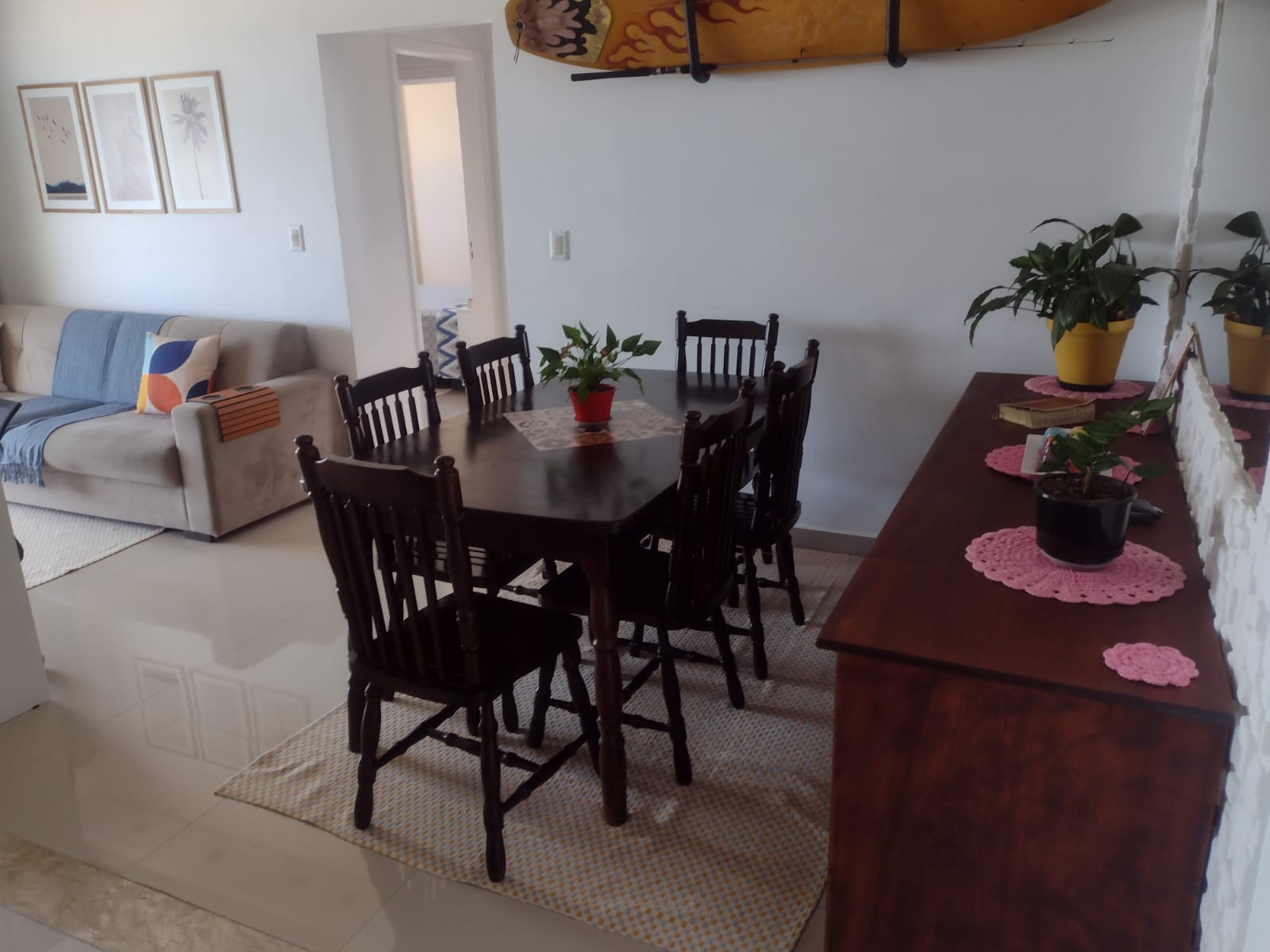 Contendo dois dormitórios sendo um suíte com banheiro integrado, sala para dois ambientes, cozinhas com armários planejados fogão cooktop e forno de embutir, varanda com churrasqueira e uma linda vista para o mar e a montanha.
