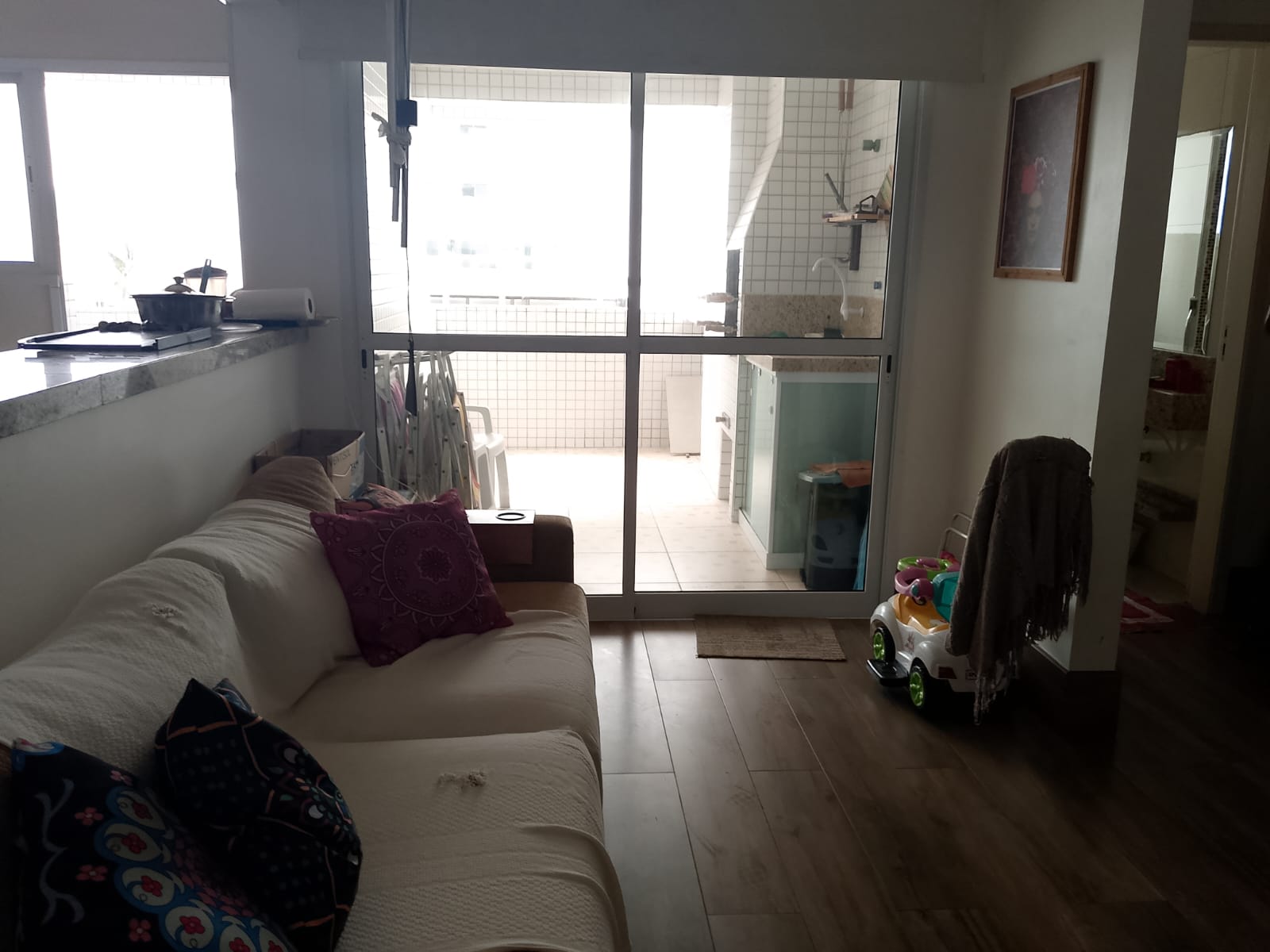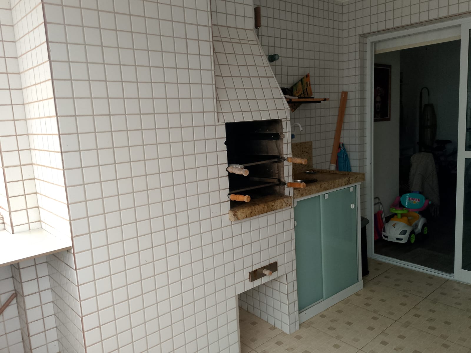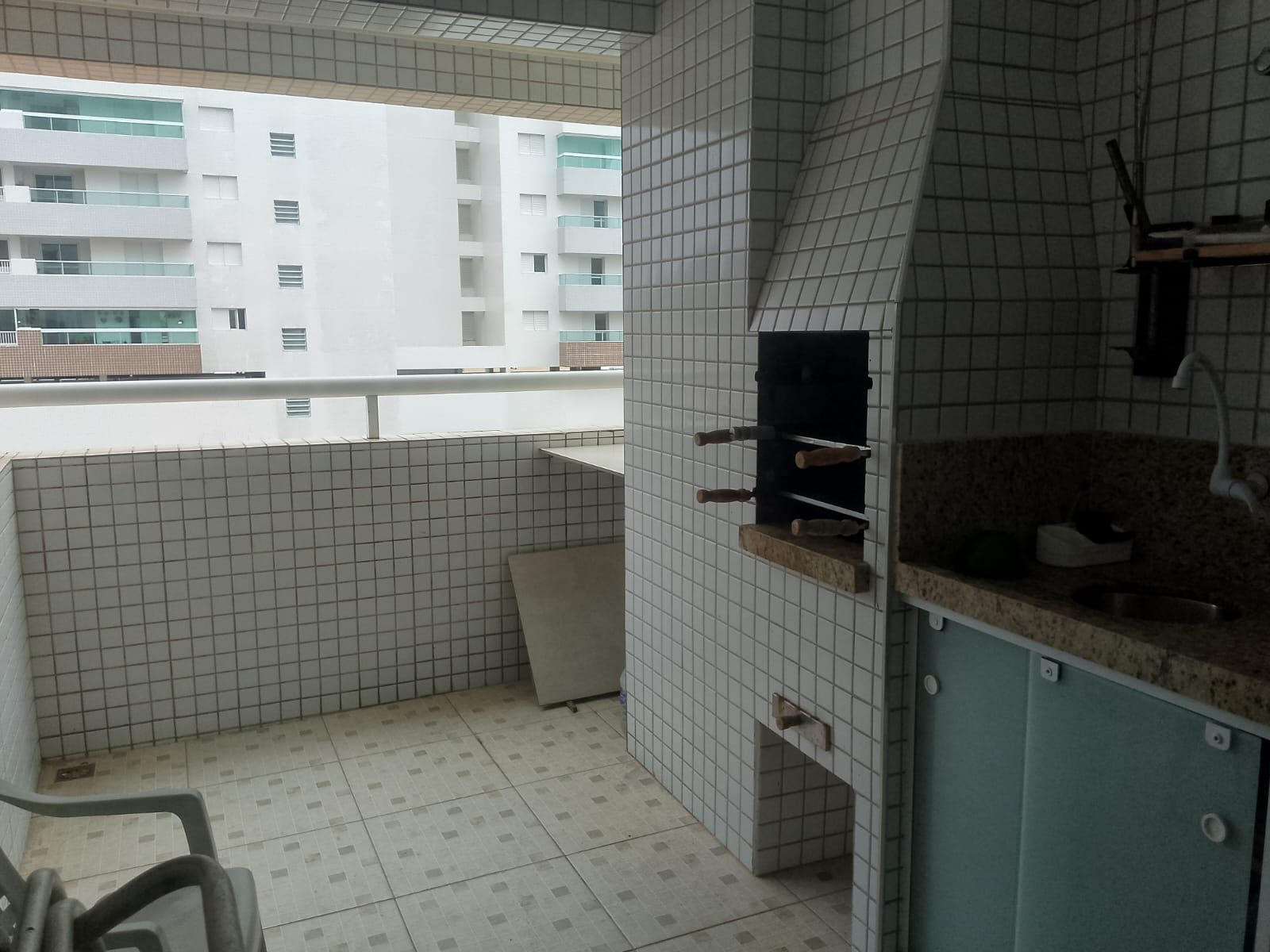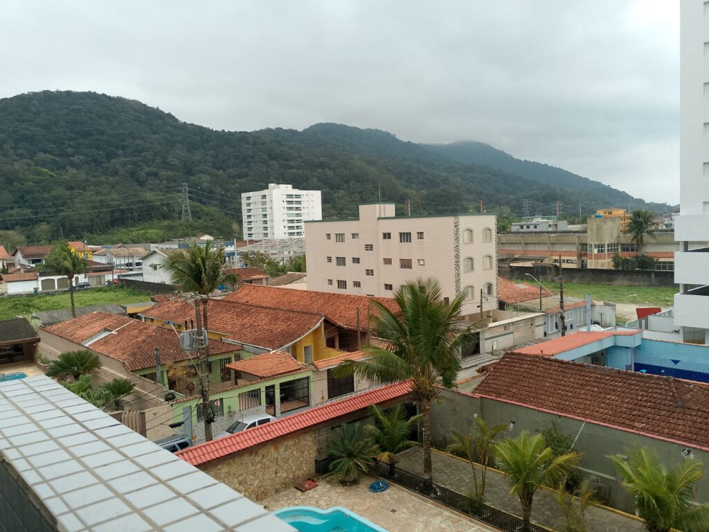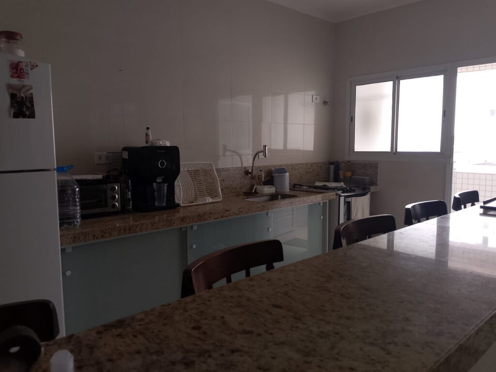 Fica localizado no Centro de Mongaguá, próximo a praia contém dois dormitórios sendo um suíte, sala, cozinha, banheiro social, cozinha, área de serviço, varanda com churrasqueira, 75m2, uma vaga de garagem